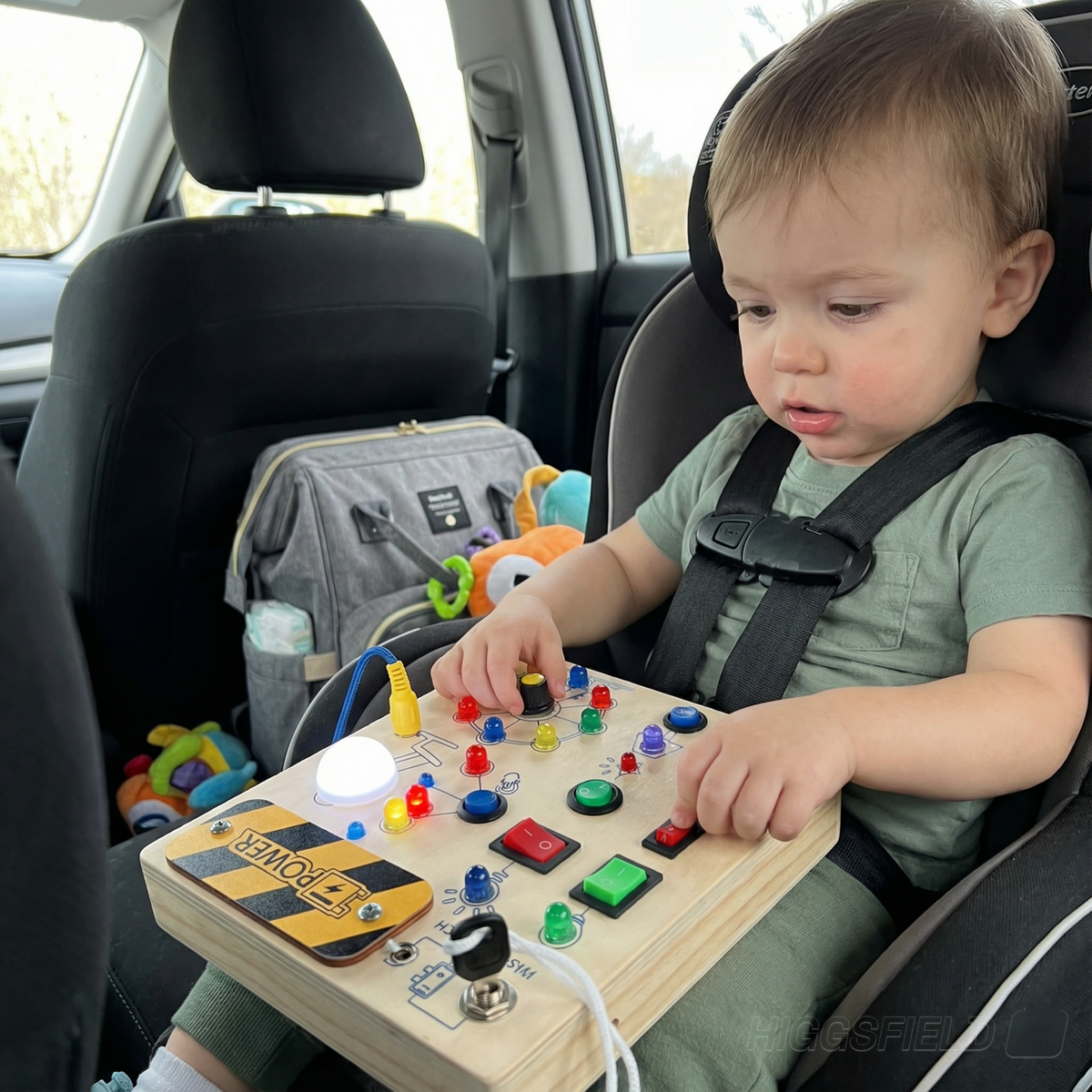 Compact and travel-ready, it's perfect for car rides, restaurants, doctor's appointments, and anywhere you need peaceful, engaged play. Crafted from eco-friendly wood with smooth edges and securely installed components, this durable sensory toy ensures safe, consistent engagement—making it an ideal alternative to screens that nurtures your child's growth every time they play.